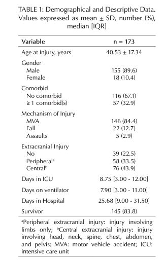 Keywords : Brain injuries; functional status; intensive care units; mortality; risk factors; employment; traumatic ,